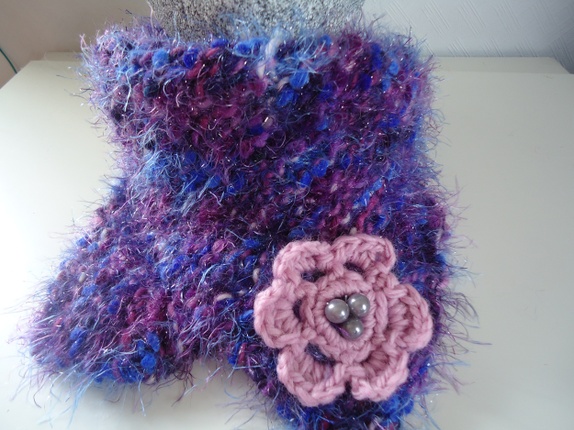 heklet i gjestals regnbuegarn 100% ull med shiny effekt garn.