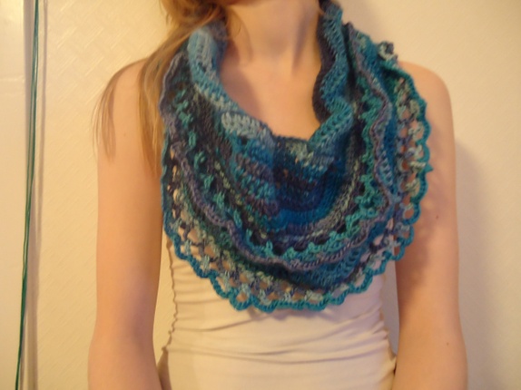Rundheklet skjerf heklet i gjestal bris.50%ull %50%soya.Et godt og mykt garn som ikke klør.eget design