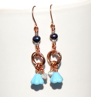 Elegante øredobber med ferskvannsperler og små glassblomster.(+ noen små glassperler).