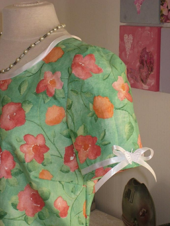 Yndig kjole sydd i 100 % bomull. Stoffet er lett og luftig, men litt skarpere grønn i virkeligheten.