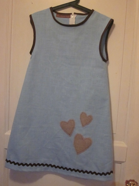Kjole sydd i mykt og behagelig bomullslerretLys blå med pynt i bruntonerGlidelås i ryggen.