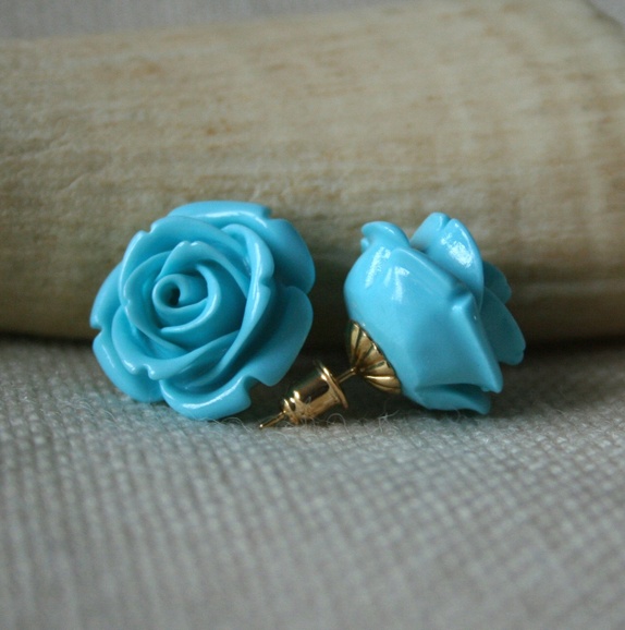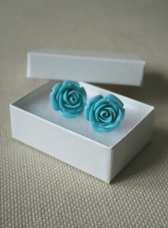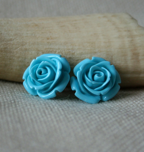 Turkis Rose - Ørepynt med store turkise roser (20mm)