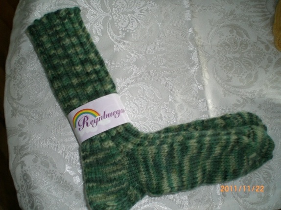 Myke og varme ullsokker strikket i grønnmelert Regnbuegarn. 100 % ull.
