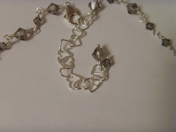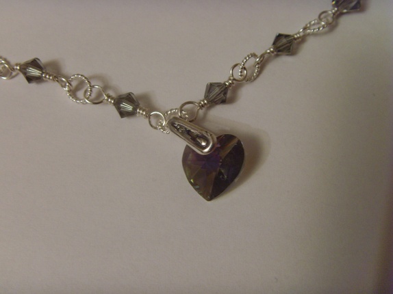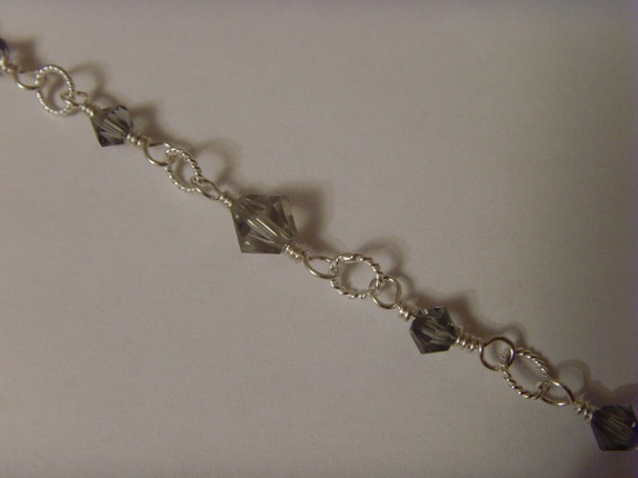 Swarovski krystallene er alle i fargen Black Diamond. Krystallene er 4 og 6mm store. I midten av kjedet er det 5mm store tvunnede ringer i 925s sølv, mellom hver krystall.