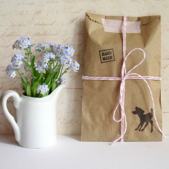 Gavelappene er pakket i en søt gavepose med Bambistempel og bomullsbånd og kan være en fin liten vertinne- eller venninnegave.