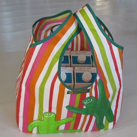 Posen er sydd etter modell av de i plastikk og rommer utrolig mye - du får enkelt en hverdagshandel i en slik - for helge- og høytidshandel trenger du nok noen flere. Den er mye mer behagelig å bære enn engangsposene og du slipper å engste deg for at posen ryker selv om du har handlet melk til hele familien (den rommer minst 8 liter).