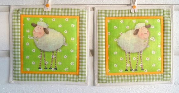 Motivet er decopage på lin. Kantar og bakstykke i bomull.Vattert og qullta i saumane.Storleik: 22 x 22 cm Prisen er pr. par.