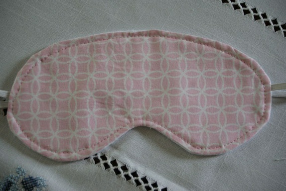 Festes med hvit flat strikk slik at masken sitter på plass.