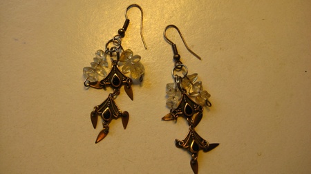 Hengeøredobber, laget av vintage smykke, bergkrystall og citrin. Sølv i ørekroker.
