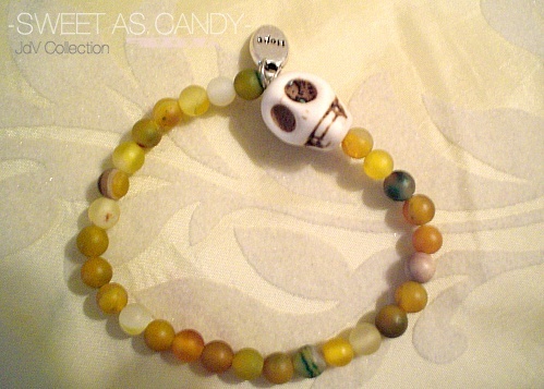 Nydelig armbånd laget av geniune frostede agat perler. Perlene er krakkelerte noe som gir dem et vintage preg. Alle materialene som er brukt er nikkelfrie.