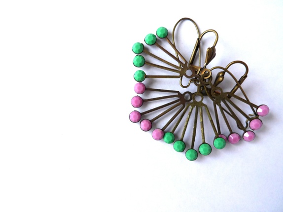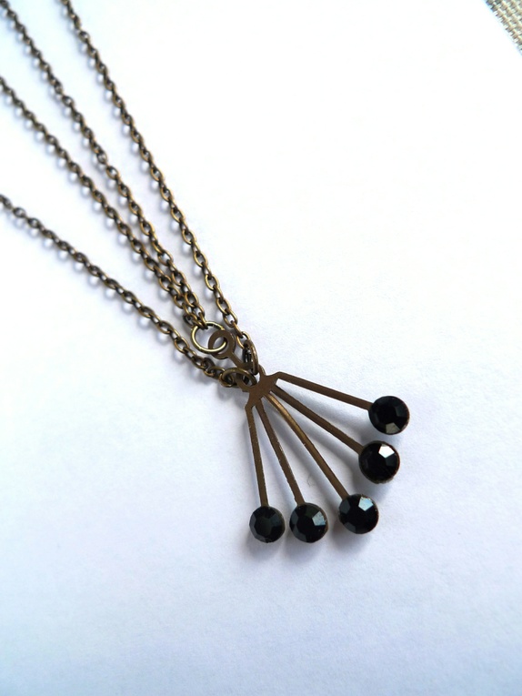 Vintage art deco anheng på dobbelt messingsmykke med antikk finish. Nydelig til en svart kjole!