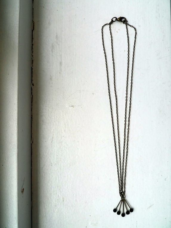 [Tags: Halssmykke, geometri, geometrisk, sort, enkelt, metall, fest]