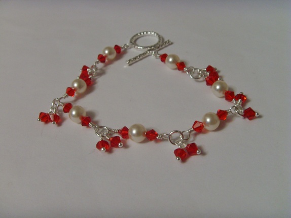 Armbåndet består av mange 4 mm Light Siam bikone swarovski krystaller. Denne fargen er en flott rød farge. litt lysere enn Siam fargen.