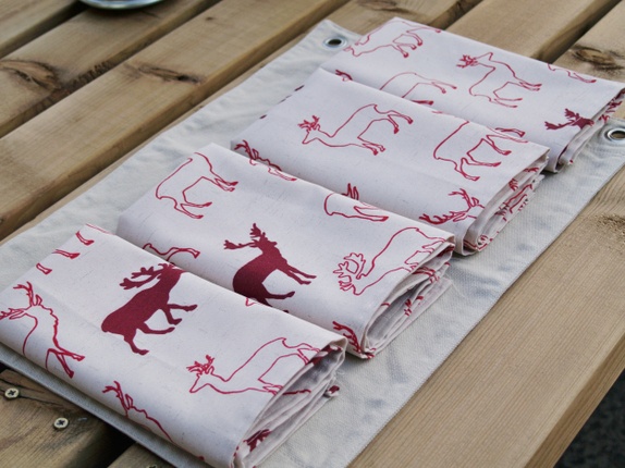 Settet består av 4 servietter.Størrelse per serviett: ca 45 x 45 cm.Stoff: Bomull/Polyester Mix
