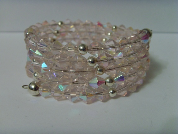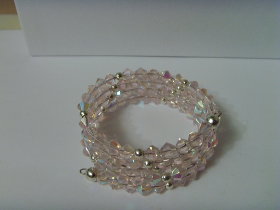 Armbåndet består av 4 ringer med memorywire, med bikone akrylperler og metallperler. Alt metall er nikkelfritt.