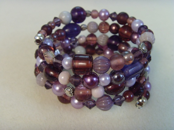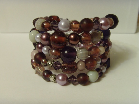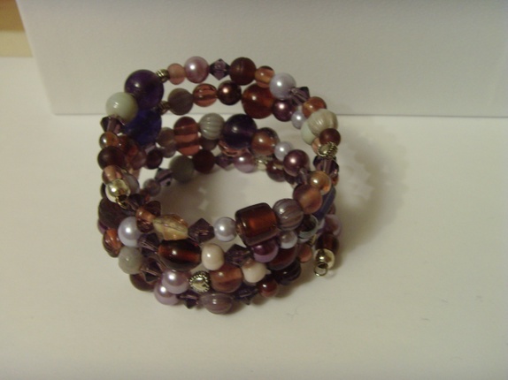 Armbåndet består av 4-5 ringer med memorywire, med forskjellige glassperler og metallperler. Alt metall er nikkelfritt.