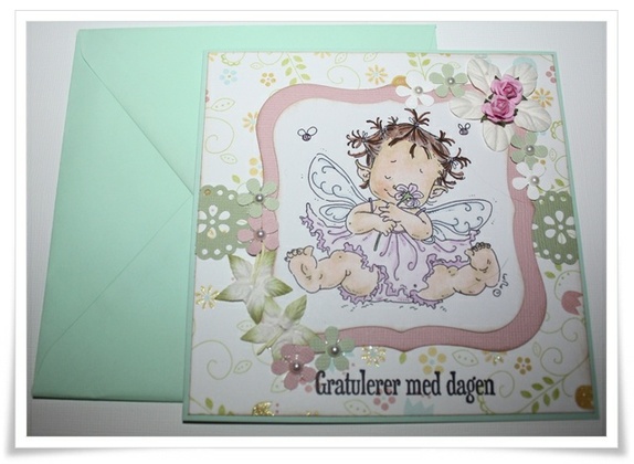 Kortet er i 13x13 str og levers med farget konvulutt . Dette kortet er kun dekorert på forsidenstemplet er malt med hånd og er fra Mo Manning