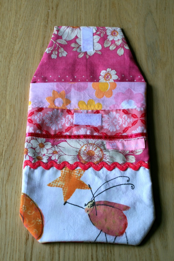 I denne får du plass til 3-4 bleier, våtservietter, salve med mere. Kjekk å ta med seg i bilen, på tur og i veska. Den er foret og har lukking av borrelås.
