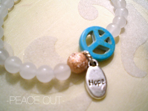 Stilig armbånd i sommerlige farger, med dette vil du garantert bli lagt merke til. Armbåndet er laget av geniune agat perler med hope anheng. Alle materialene som er brukt er nikkelfrie.