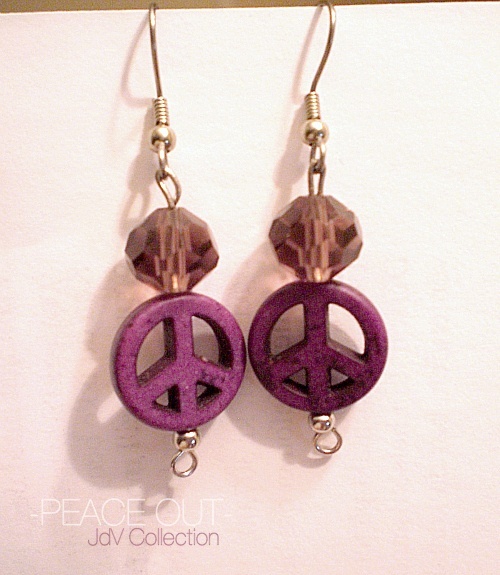 Stilige øredobber med swarovski krystaller og trendye peacetegn. Metallet er selvfølgelig nikkelfritt.
