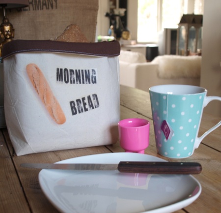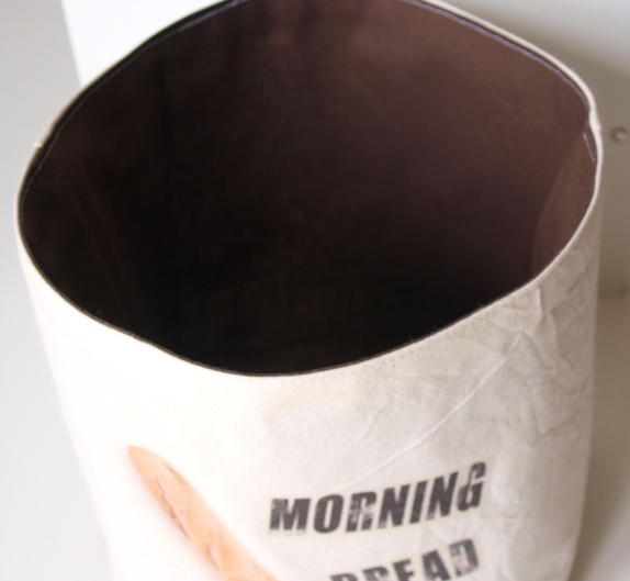Denne morsomme brødposen er sydd i ubleket bomullmed påstrøket motiv.Foret med brunt bomullstoff, ingen synlige sømmer.Vliselin mellom lagene.Vaskes og strykes på vrangen ved 30-40 graderHøyde: 20 cmdiameter ca 18 cm