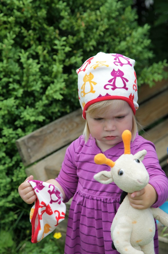 Luen er sydd i en fin mellombrun farge med grønne og rosa blomster og beige blader. Avslutningen på luen er kantet med en myk, dyp rosa jersey.Luen finnes i 4 størrelser, XS, S, M og L.