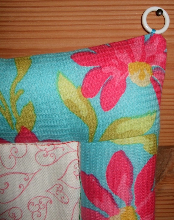 Tekstilbilde: grønt monster m/blomstrete ramme