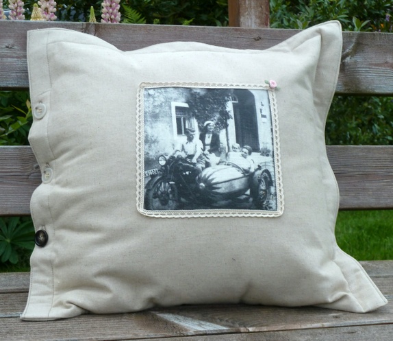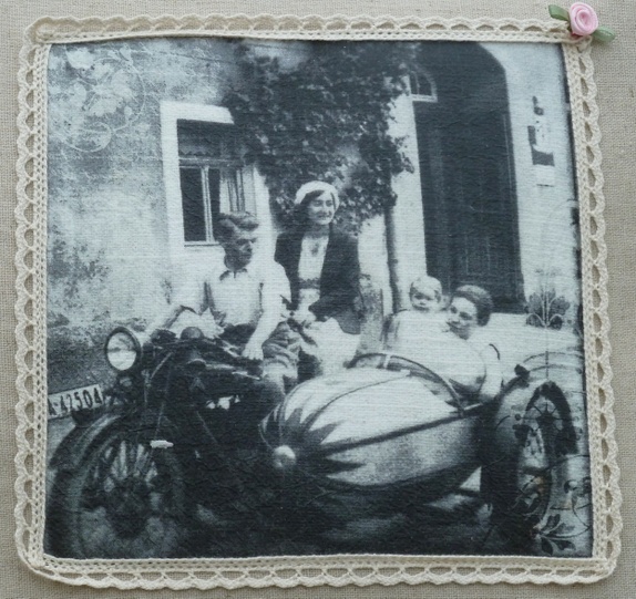 Motiv i decoupage på grov lin - slik at det ser nesten ut som om motivet er mala på lerret.