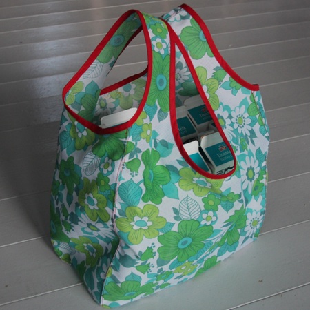 Posen er sydd etter modell av de i plastikk og rommer utrolig mye - du får enkelt en hverdagshandel i en slik - for helge- og høytidshandel trenger du nok noen flere. Den er mye mer behagelig å bære enn engangsposene og du slipper å engste deg for at posen ryker selv om du har handlet melk til hele familien (den rommer minst 8 liter).