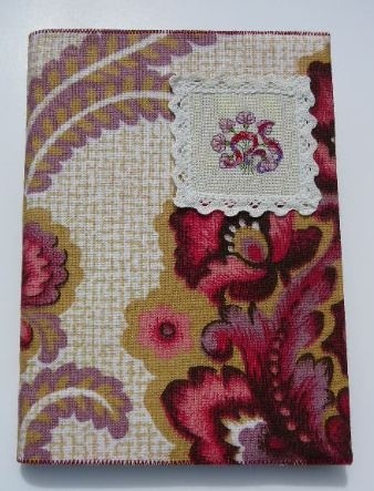 Notatbok med linjer trukket med et nydelig stoff med broderiet.