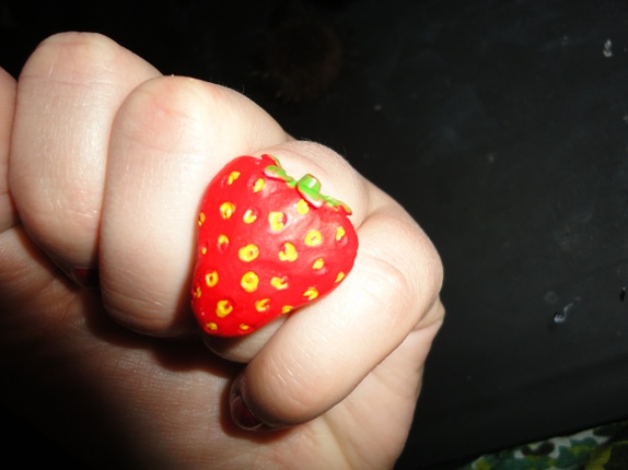 Søt Jordbær ring som er regulerbar og nikkelfri :)