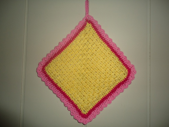 Enkle grytkluter heklet i bomullsgarn.