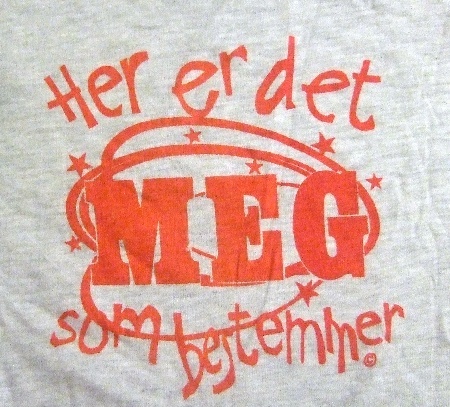 Grå T-skjorte str. 2-3 år med orangerødt trykkHER ER DET MEG SOM BESTEMMER!