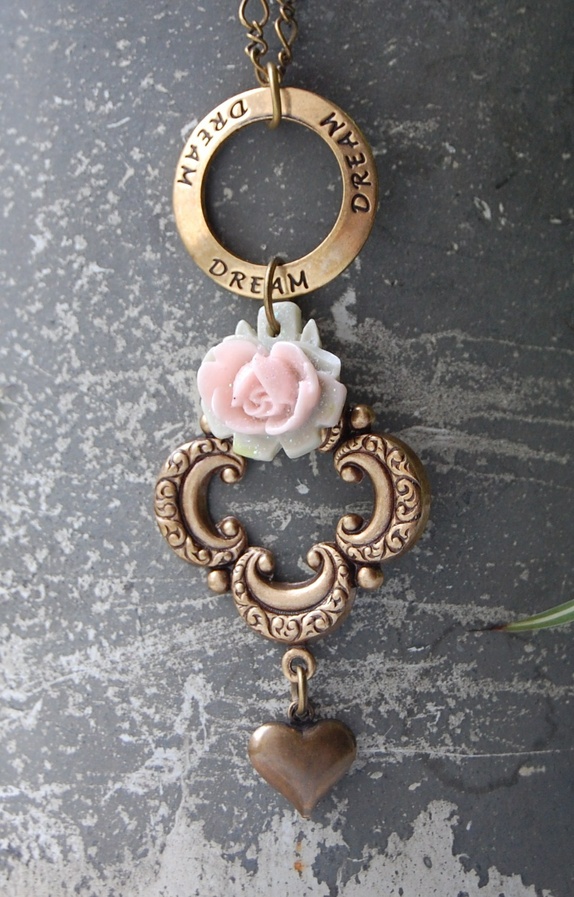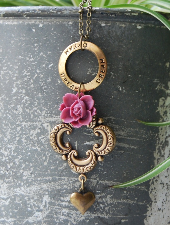 Nydelig antikkgull kjede med luciteblomst.Lengden på lenken er ca 80 cm lang inkl lås.Lengden på annhenget er 8 cm,og det er 3 cm bredt.