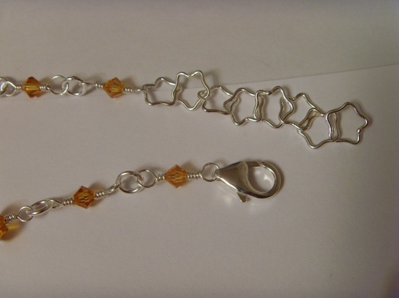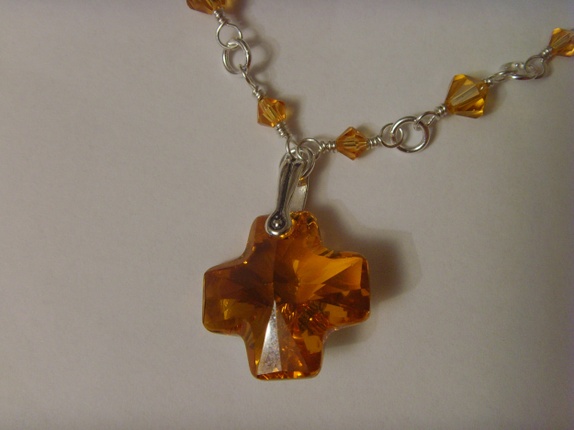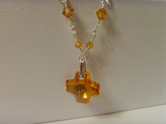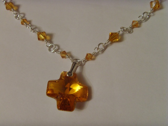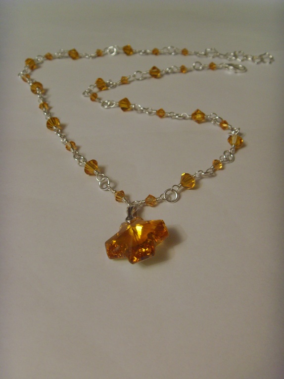 Swarovski krystallene er alle i fargen Topaz. Krystallene er 4 og 6mm store. Det er 5mm store ringer i 925s sølv mellom hver krystall.Anhenget er ca 20mm stort.