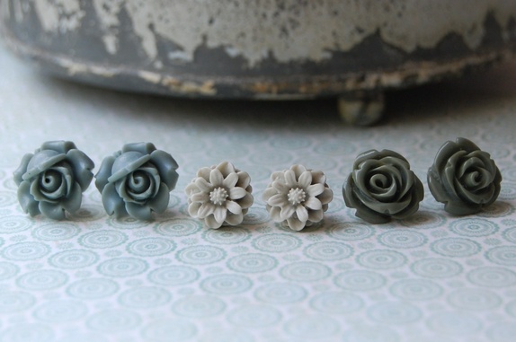3 par nydelige øredobber på stift av kirurgisk stål.ca 1.2, 1.4 og 1.5 cm