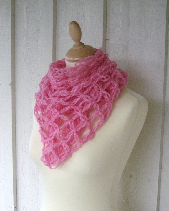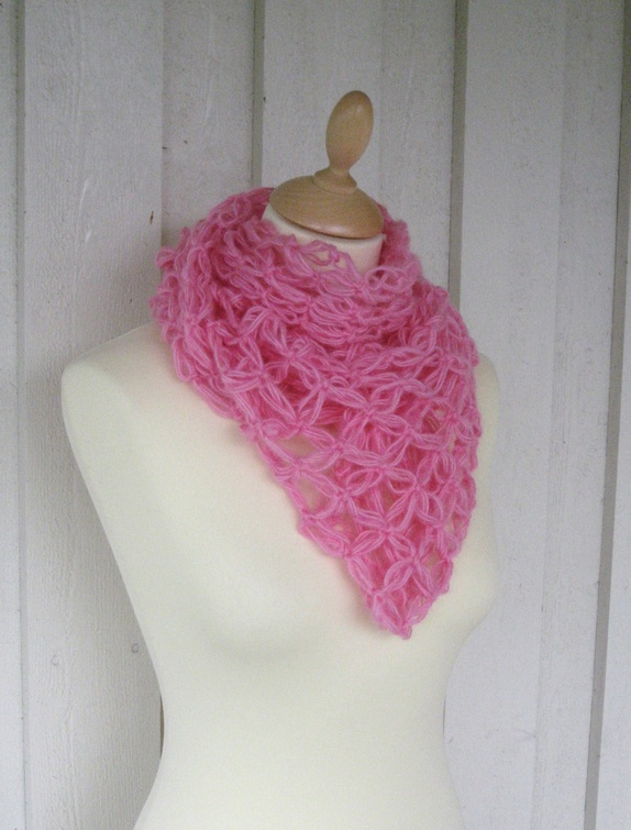 Herlig og mykt sjal/sjerf heklet i enlemasker/kjærlighetsknuter.