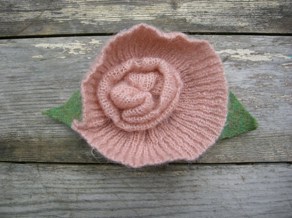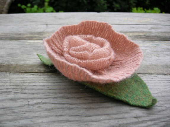Gjennbruk av ullgensere. Vakker rose til festing av et sjal,fest den på en veske, pynt på kjole eller genser.