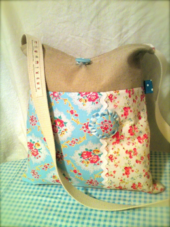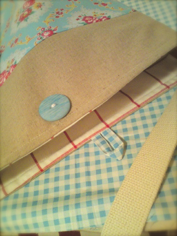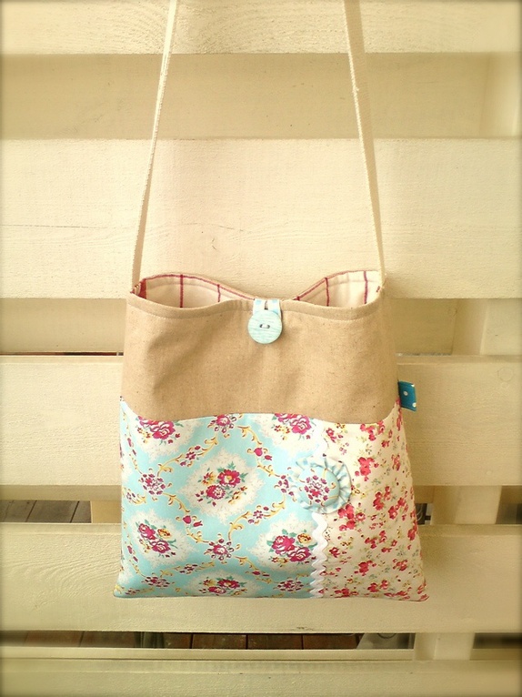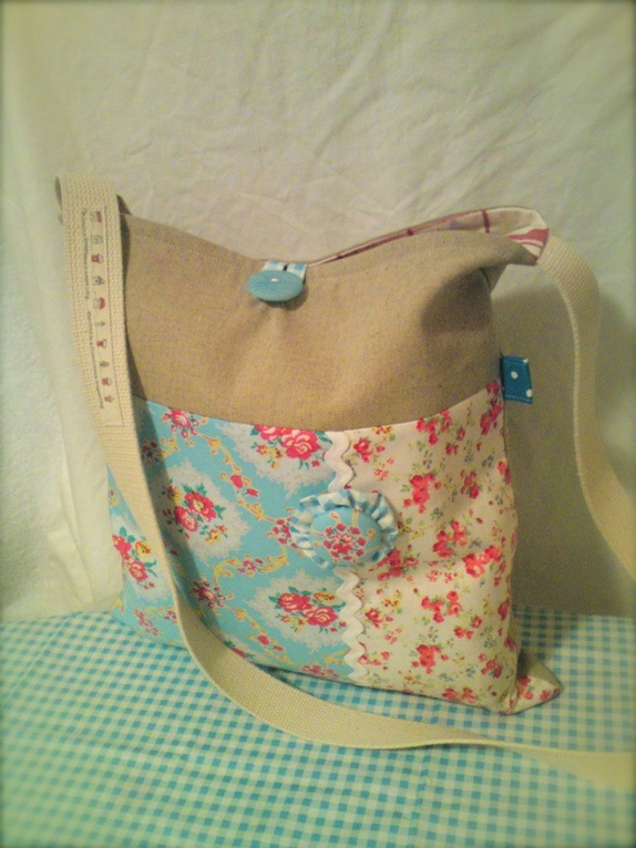 Trippel søm festet håndtak. Bæres på skrå over skulderen.