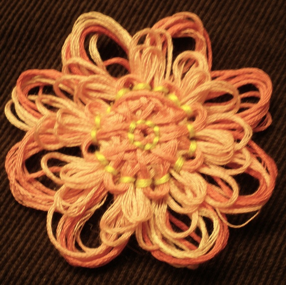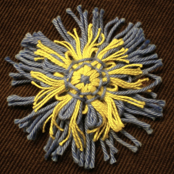 Blomstene blir til ved at man surrer tråd eller garn rundt pinnene på forskjellige måter og sikrer dem med noen dekorative sting. Man kan klippe opp løkkene for en luftig form, sy på perler, paljetter eller knapper og variere stingene i midten.