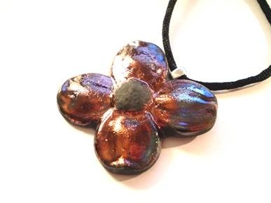 Håndlaget smykkeblomst som er brent med teknikken raku.
