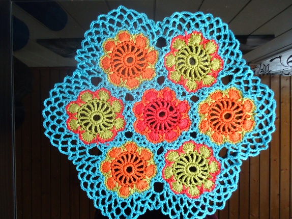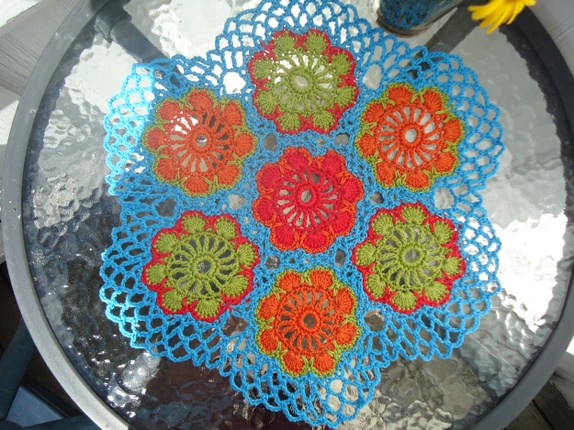 Nydelig duk heklet i gjestal sport,eget design.46 cm i diameter.