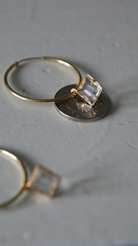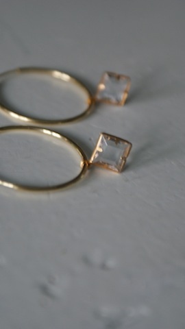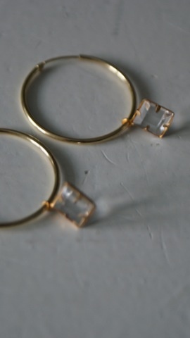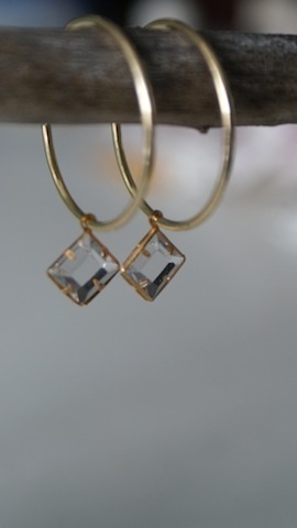 Øreringer med vintage klar glass sten i en gull innfatning. Vakreri form og spill. Måler 1x1cm.