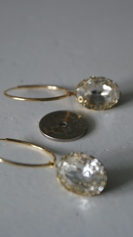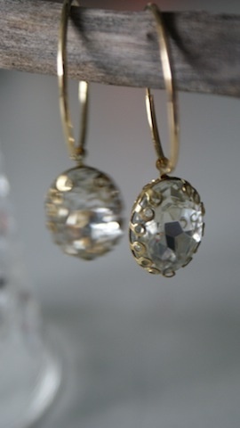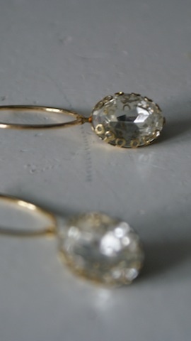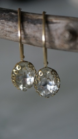 Øreringer med de vakreste gamle glass sten i en gull innfatning. Utrolig vakre, og et helt eget spill. Ovale. Måler 2,2 x1,5 cm.