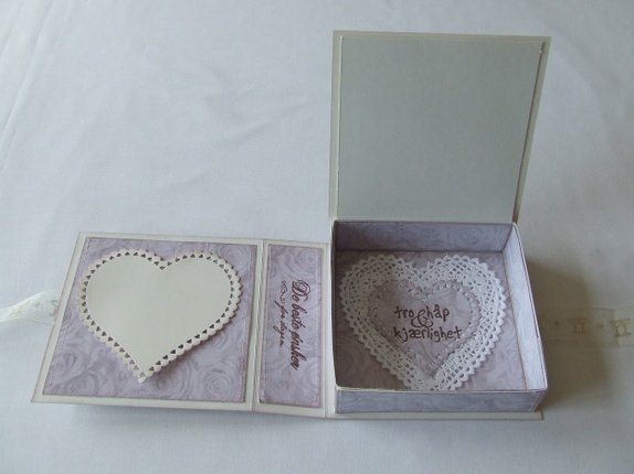 Tekst inni esken : " Tro, håp og kjærlighet."