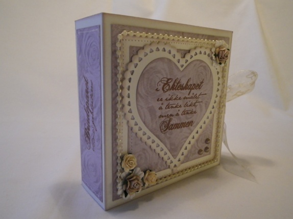 " Brudeparet, gratulerer" - er brukt på ryggen på esken