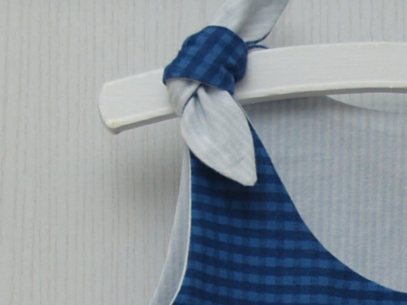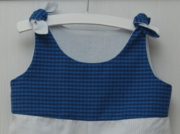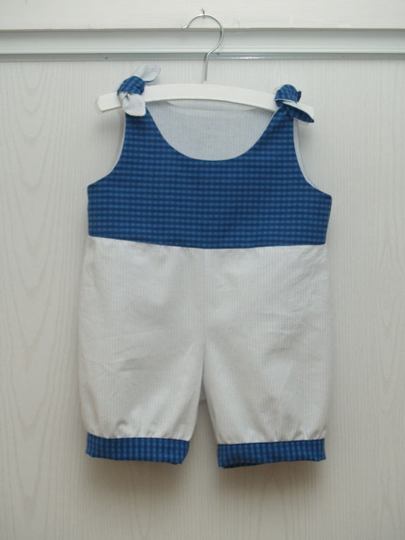 Myk og ledig kortbukse med knyting over skuldrene. Sydd av to dynetrekk.