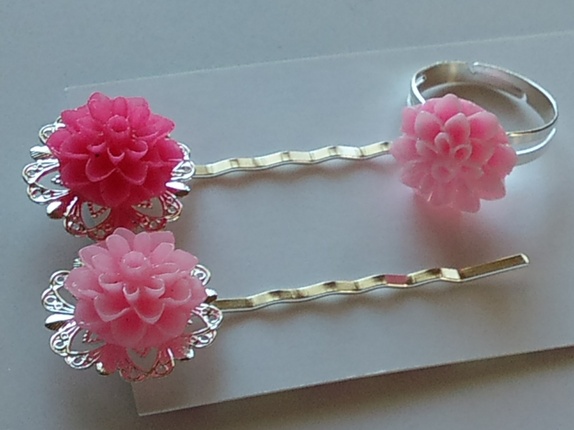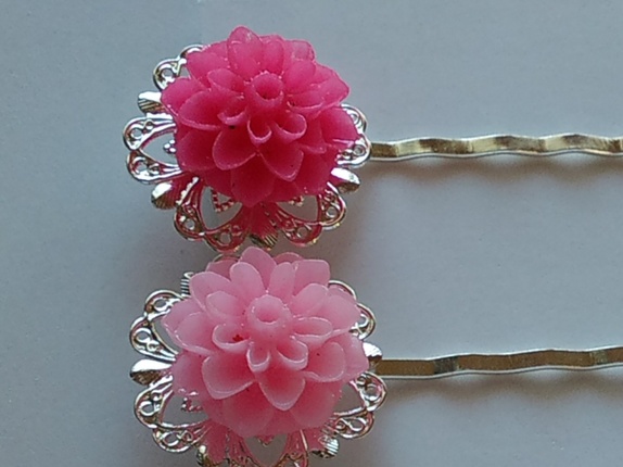 Hårspennene er 55mm lange, og har blomst som pynt!