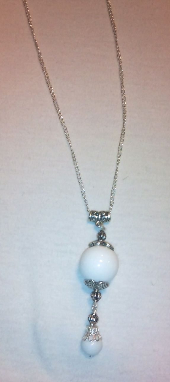 Forsølvet kjede (50 cm). 2 skimrende glassperler i ulik størrelse, med sølvfargede mellomledd