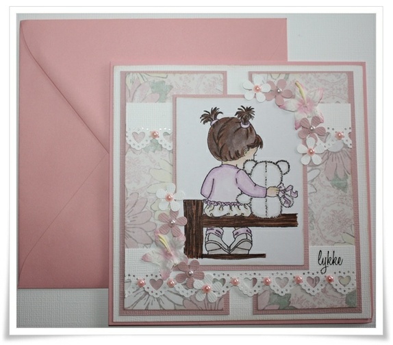 Kortet er i 13x13 str og levers med farget konvulutt som på bilder. Dette kortet er kun dekorert på forsidenstemplet er malt med hånd.